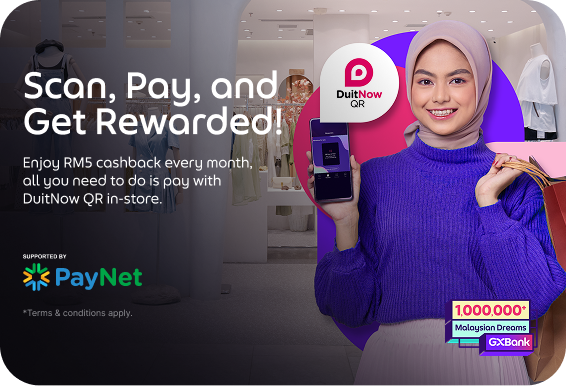 *GXBank adalah ahli Perbadanan Insurans Deposit Malaysia (PIDM). Deposit dilindungi oleh PIDM setakat RM250,000 bagi setiap pendeposit.